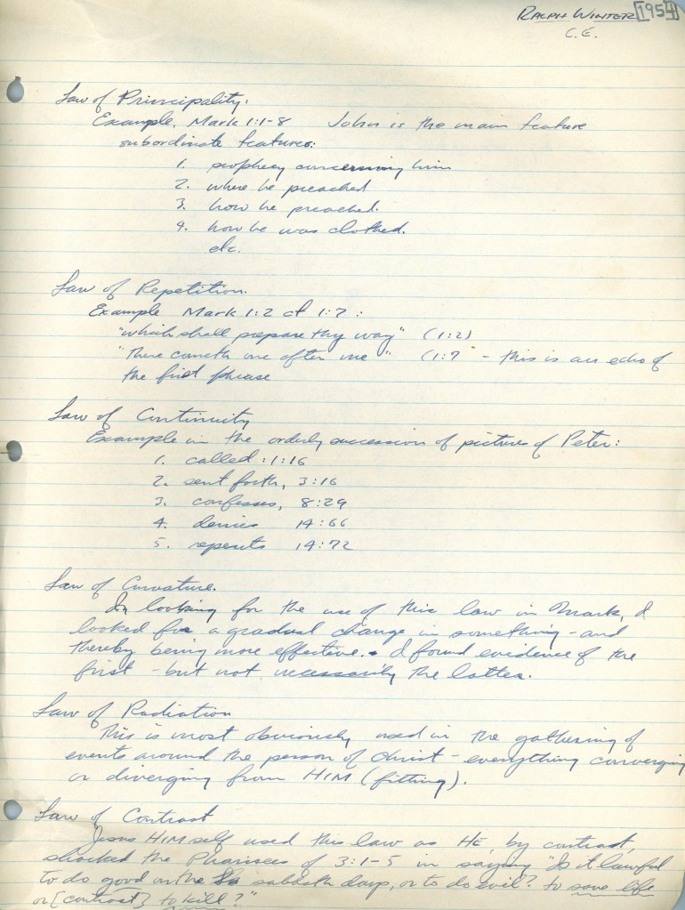 Ralph Winter, the Seminary Student *These are Winter’s notes from his Christian Education course at Princeton Theological Seminary* Share this: Click to share on X (Opens in new window) X Click to share on Facebook (Opens in new window) Facebook Like Loading...