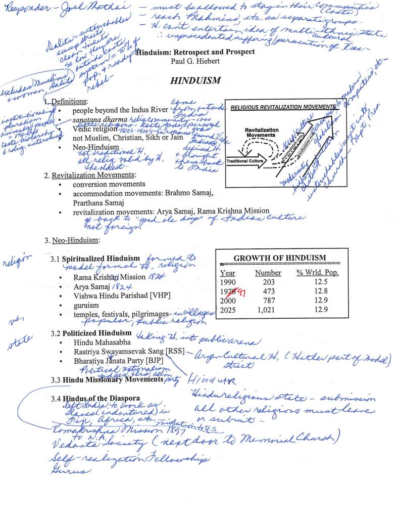 Indian Hinduism and Christianity *The handwritten notes are by Barbara Winter, the second wife and widow of Dr. Ralph Winter*