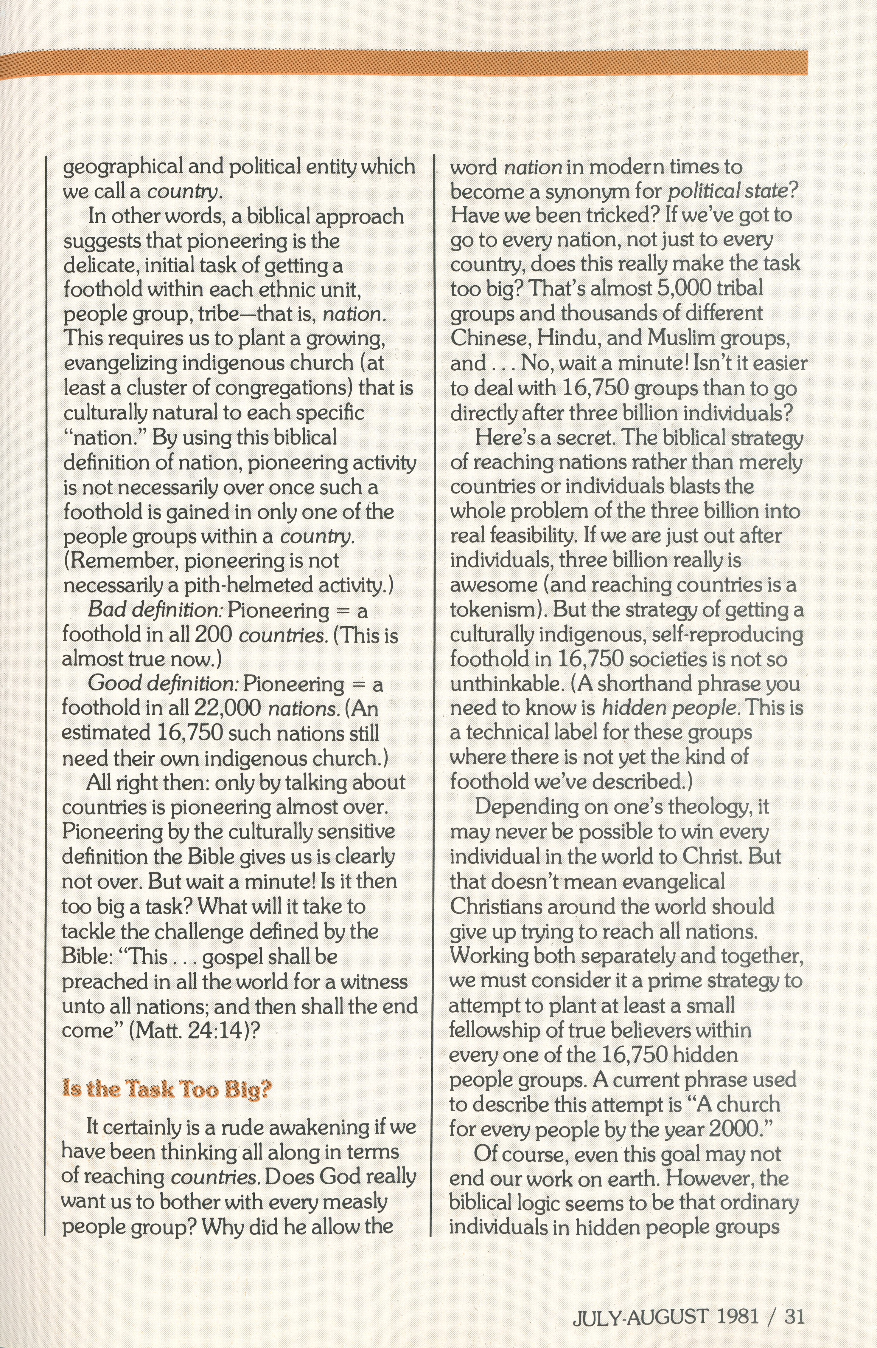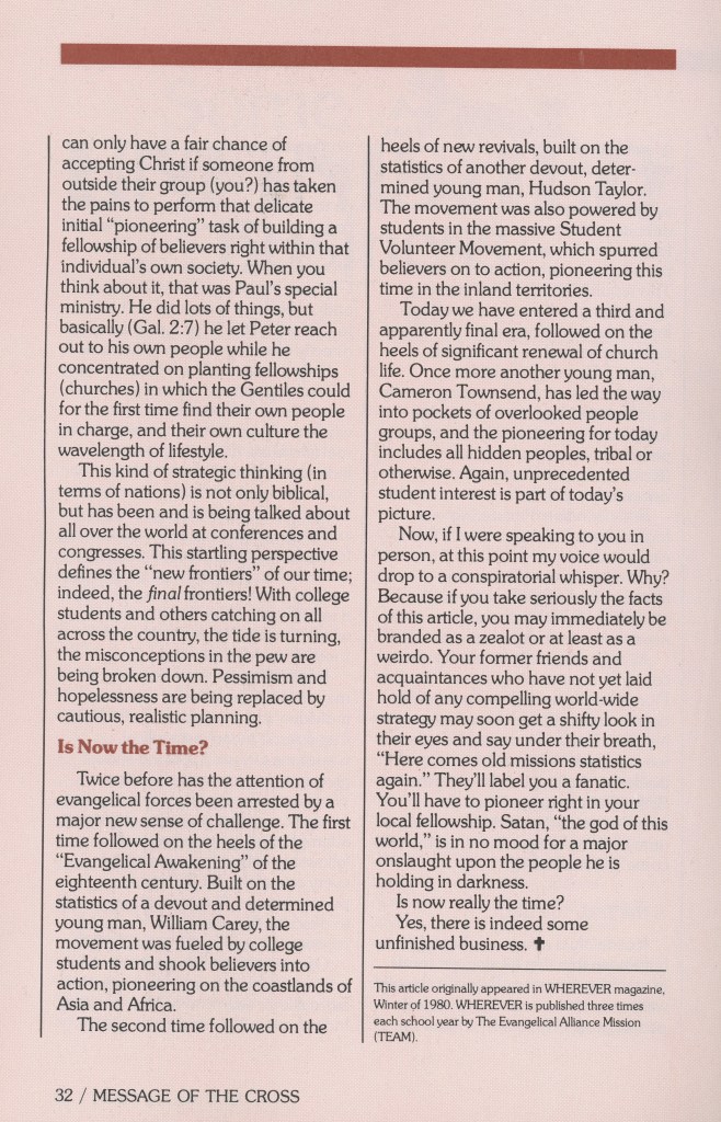 *This page is out of a booklet produced for the World Conference on Church and Society in Geneva, Switzerland on July 13-24, 1966. It is entitled “Revolution and Renewal: Christian Response to the Technological and Social Revolutions of Our Time.” The underlining and handwritten notes are by Dr. Ralph Winter*