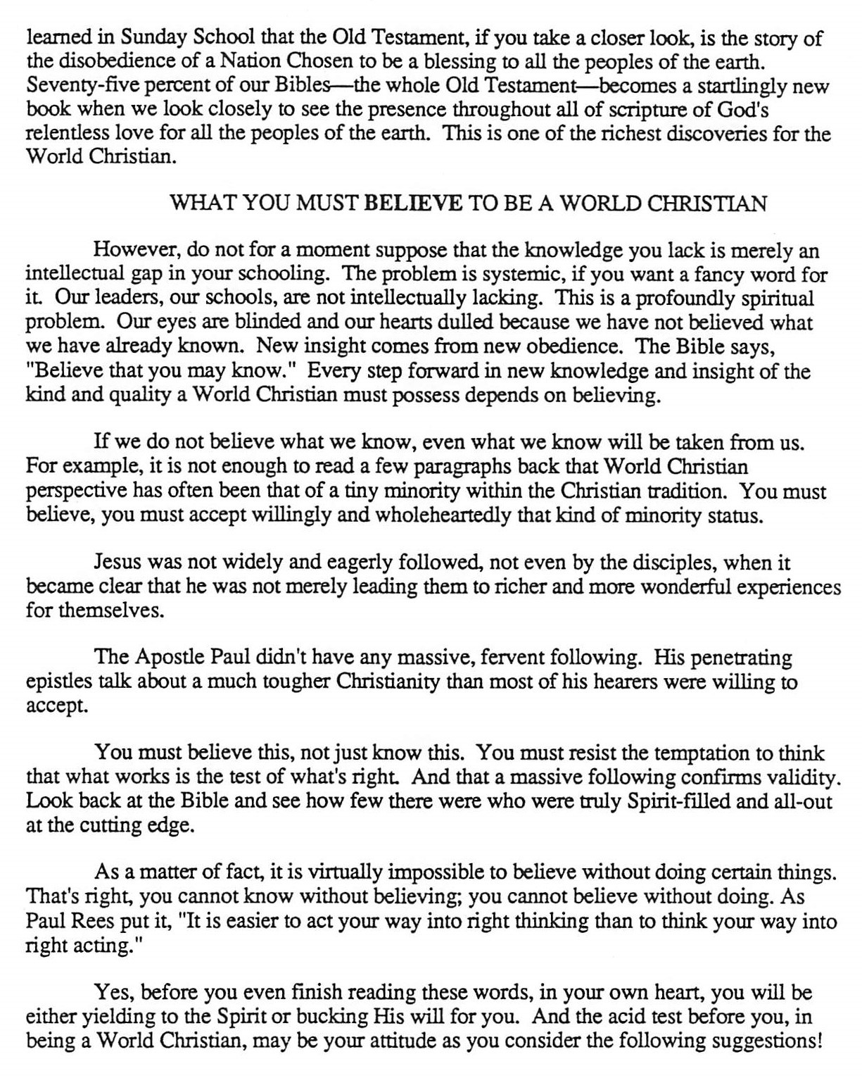 Knowing As Well As Believing *Pages are excerpted from a lead article written by Ralph Winter in the mission section of Christian Life magazine entitled “What It Means to be a World Christian,” dated December of 1986* Share this: Click to share on X (Opens in new window) X Click to share on Facebook (Opens in new window) Facebook Like Loading...